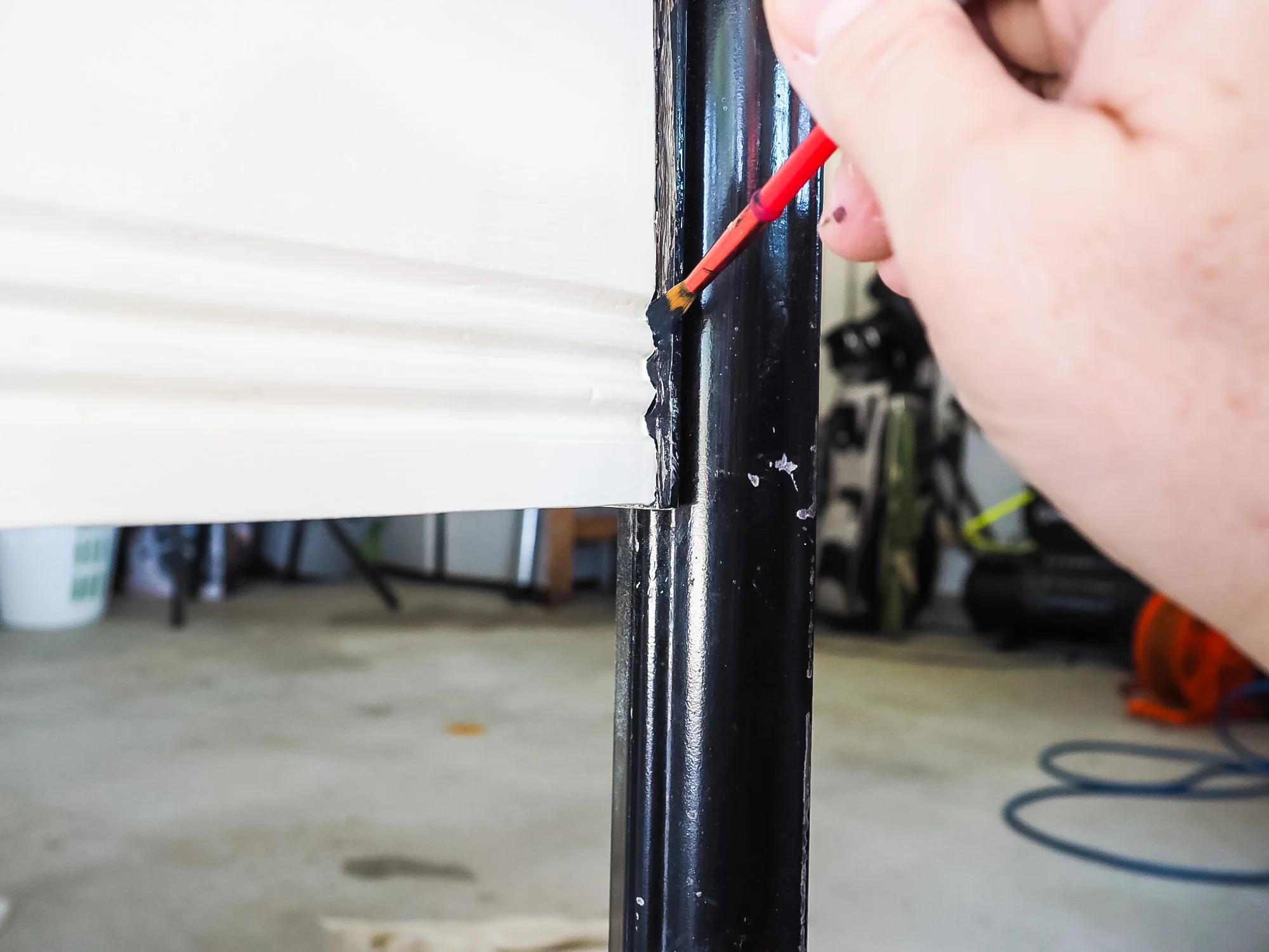 I put two coats of primer on all the wood parts, sanding with finishing grit sandpaper between coats. Then I put a coat of the same paint I used on my IKEA faux built-ins in Sherwin Williams Honeymilk (I use Valspar Signature paint because it has the best one-coat (usually) coverage and amazing durability). I decided not to paint black in the grooves like the last owner had done. I like how clean it looks with just white on the wood and black on the metal (which I coated with some leftover chalk paint I had on-hand, and the matte finish looks amazing!)